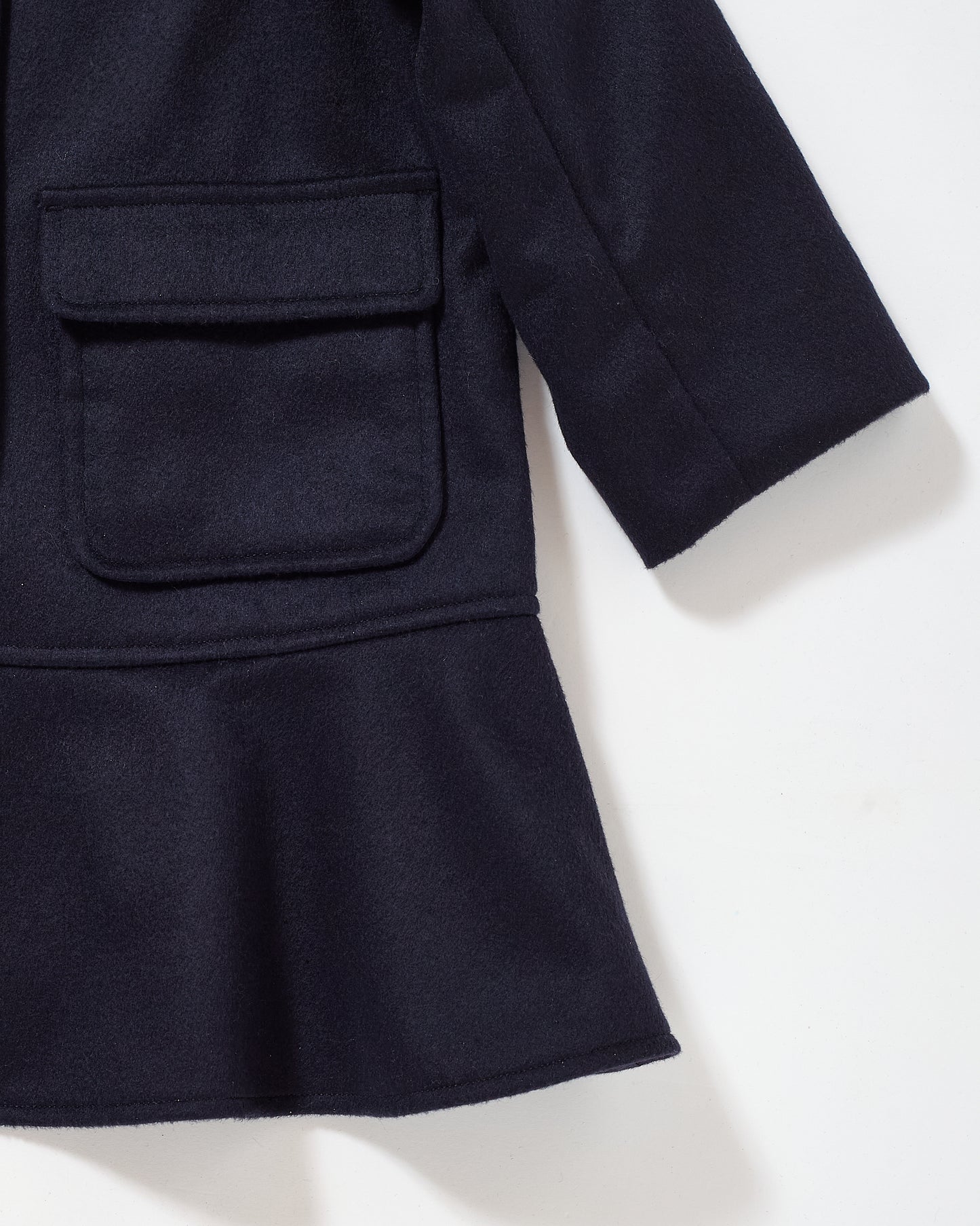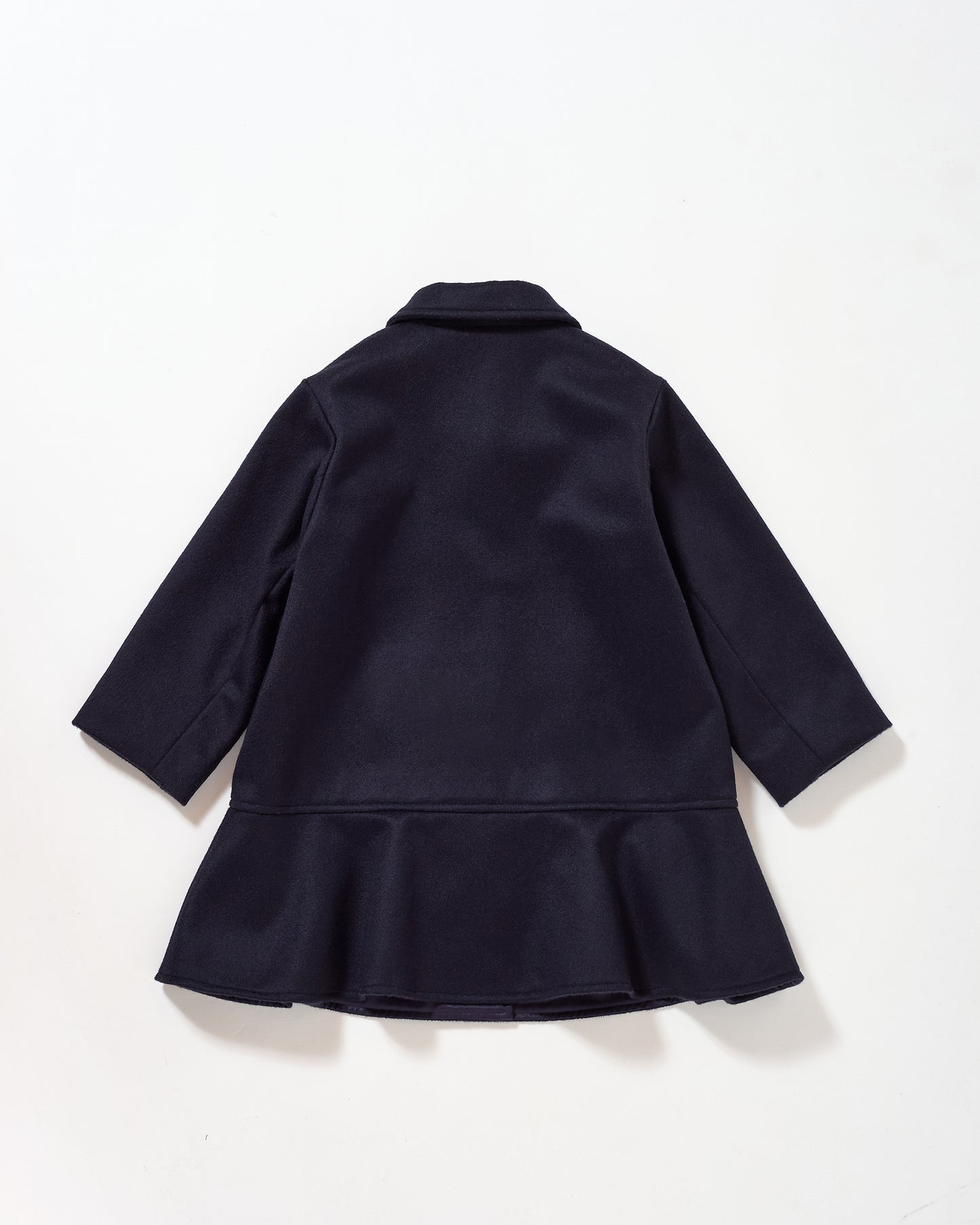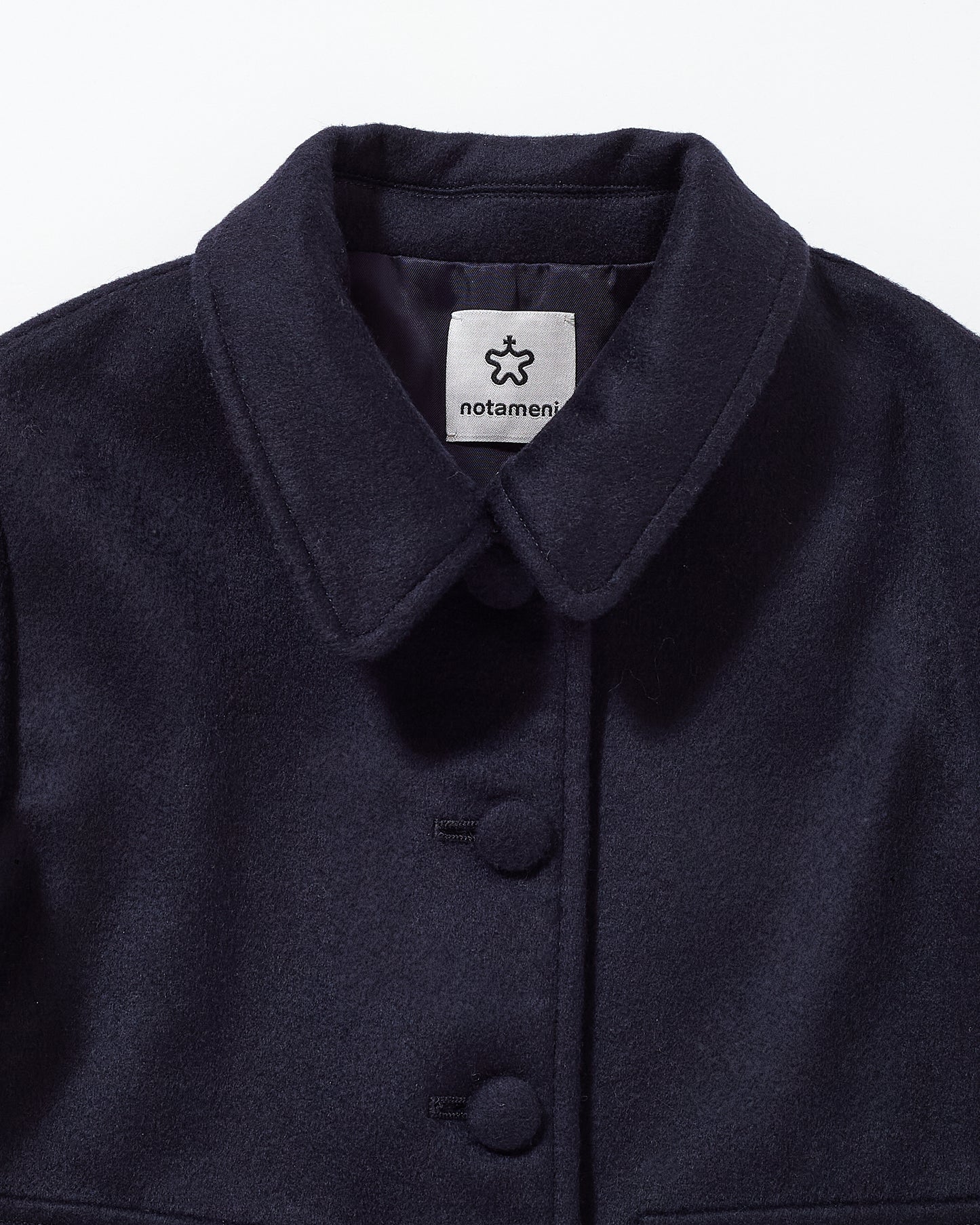 丸みのある衿とくるみボタンが、端正さの中にやさしい表情を添えます。