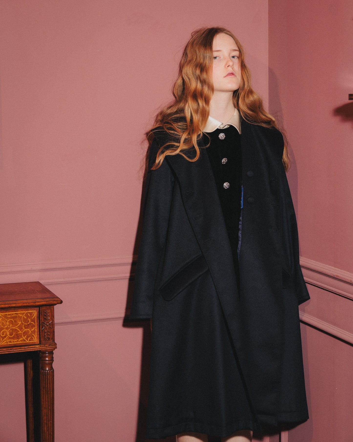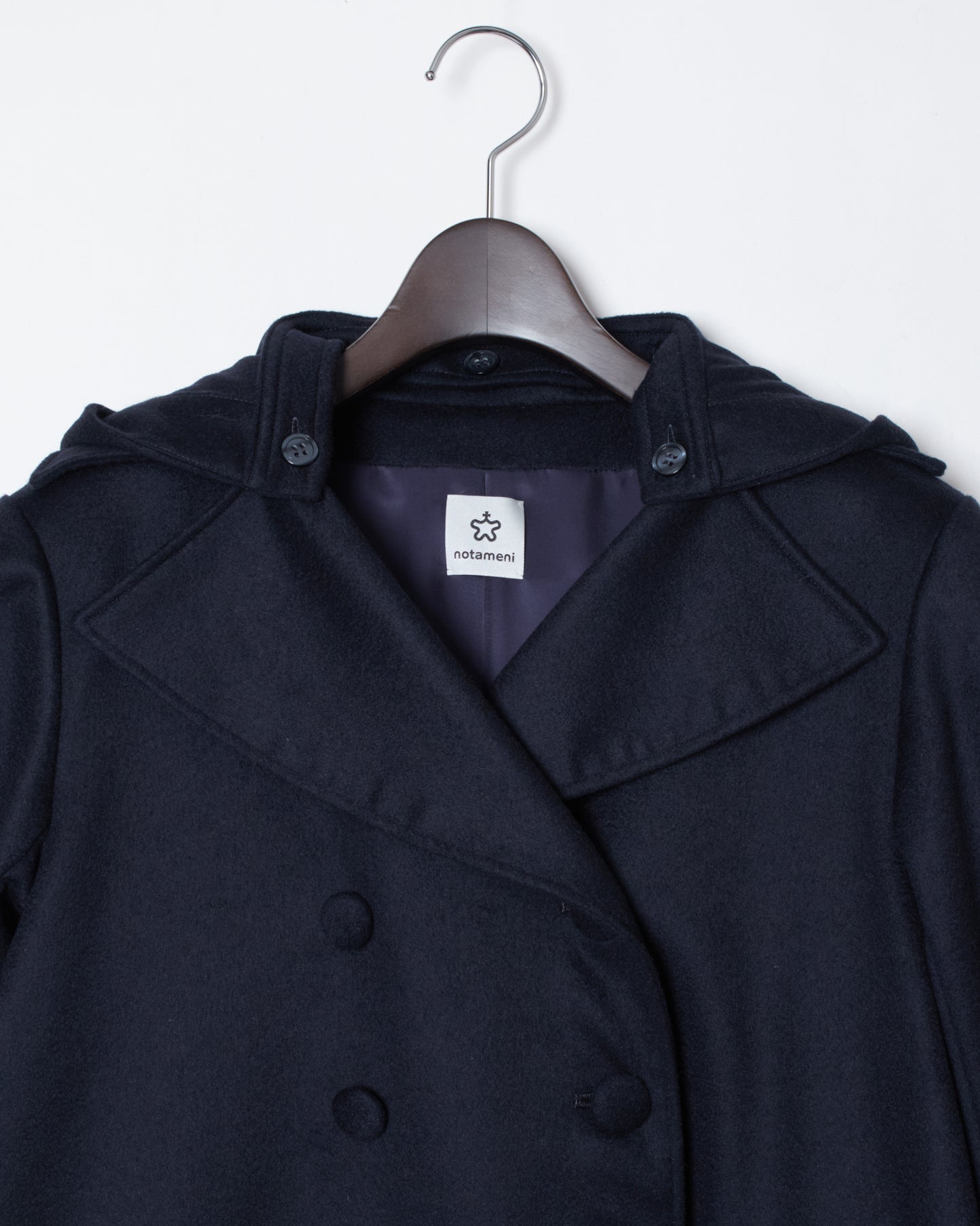 クラシックなカラーとフード、袖のディテールを配することで、