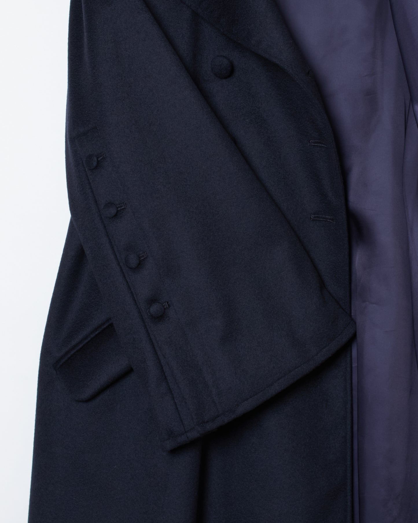 仕立てられる構築的でミニマルなクチュールライクなコート。